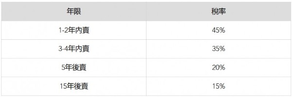 105年後受贈的房屋,如果在短期內賣掉,需繳納高額的房地合一稅。房地合一稅如下: